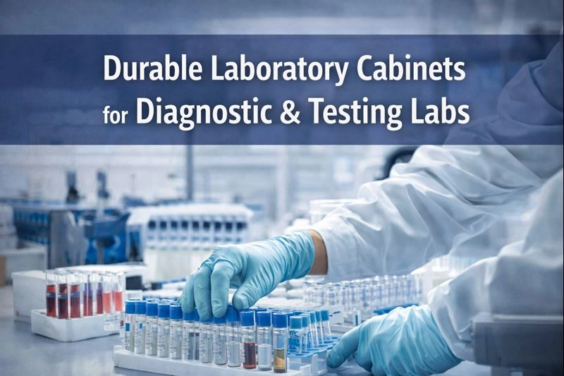 Durable laboratory cabinets designed for diagnostic and testing laboratories, ensuring chemical resistance, workflow efficiency, and long-term operational stability.
