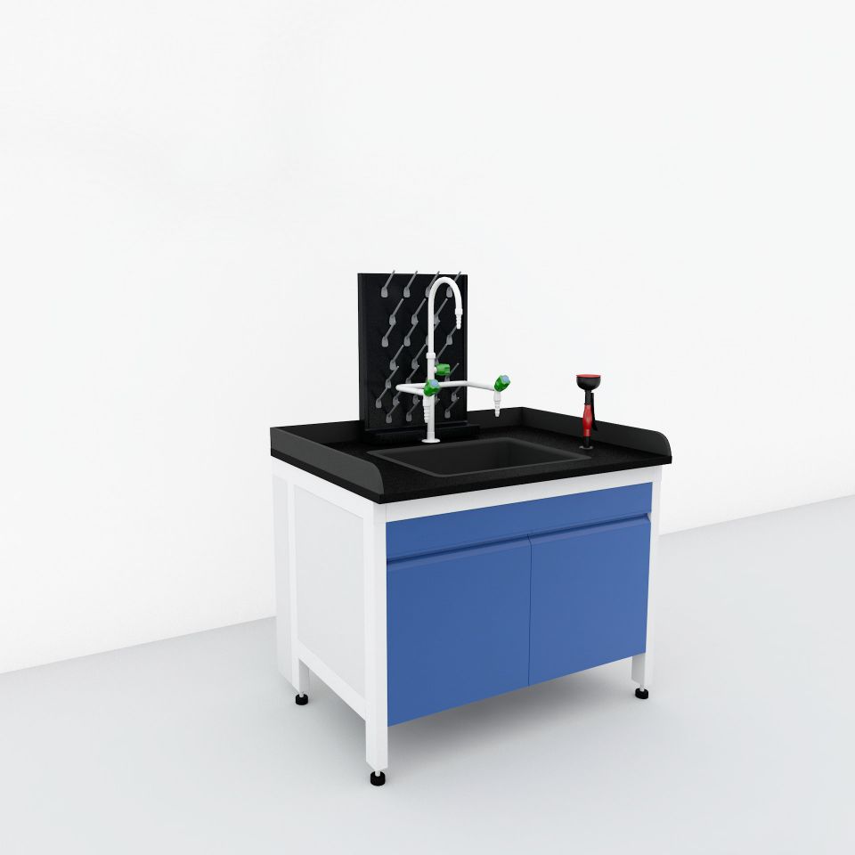 The H-Frame/Modular Lab Bench is supported by a solid H-Frame steel frame, connecting the upper and lower cabinet units and the countertop. Optional mobile cabinet, no cabinet and suspended cabinet structure.