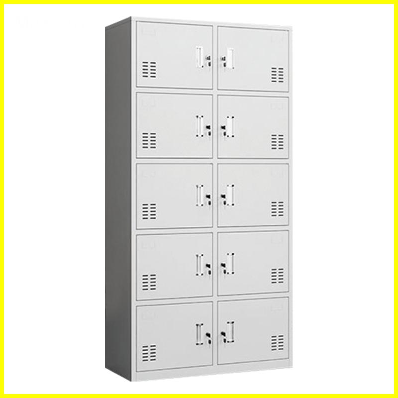 The robust steel body resists daily use and regular cleaning, while the fixed base (or casters) keeps the cabinet stable even when fully loaded. Ventilated doors reduce moisture build-up, and label frames help users quickly identify their assigned compartment.
