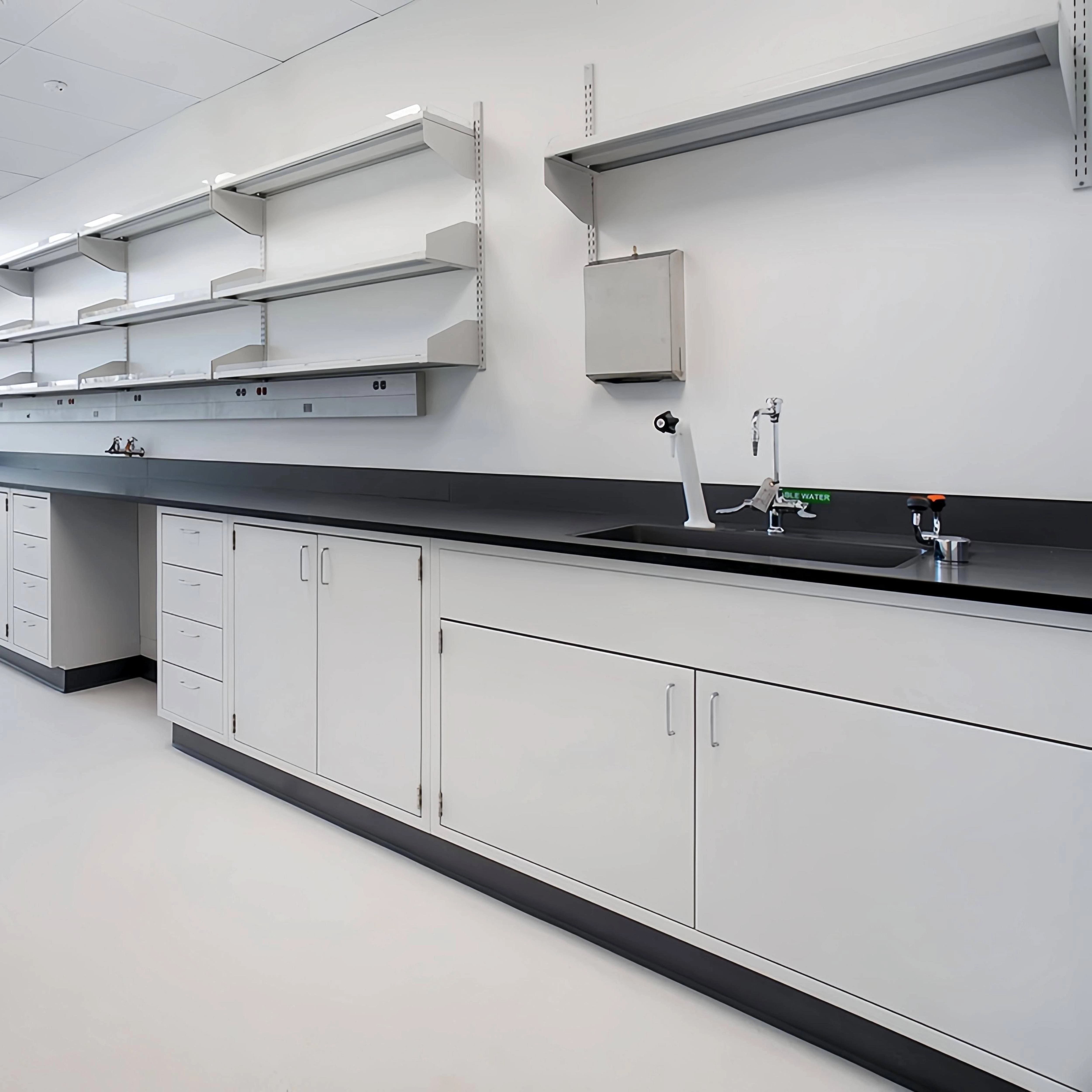 Material Selection: Choose bench surfaces (epoxy, stainless steel, phenolic) that match lab applications.