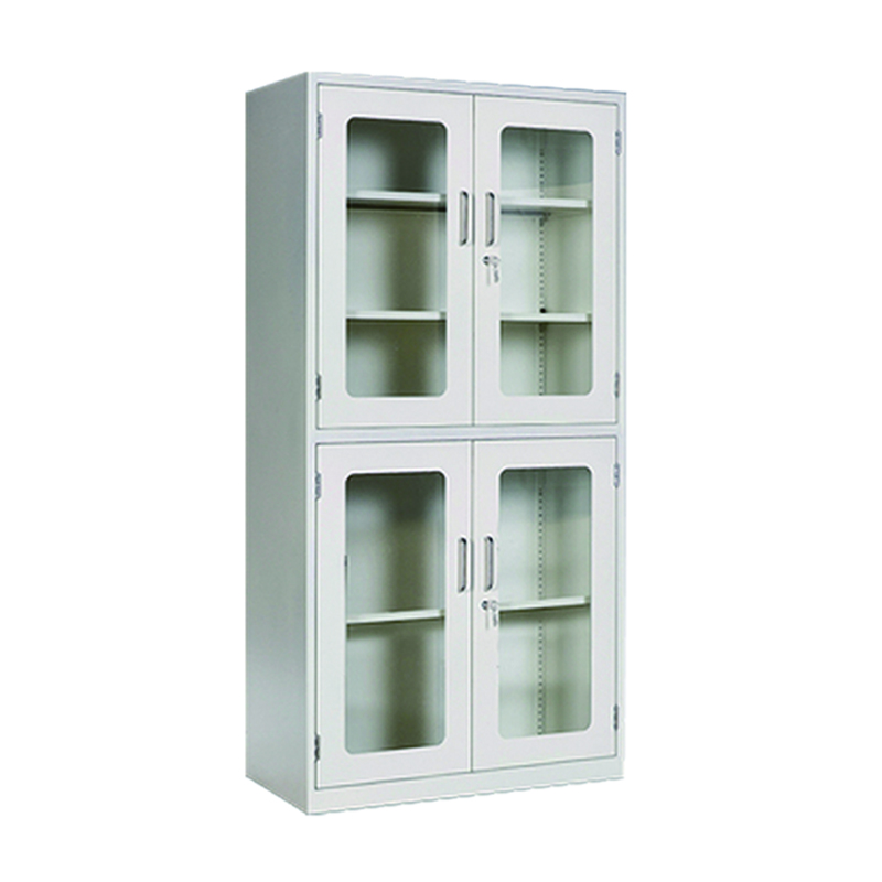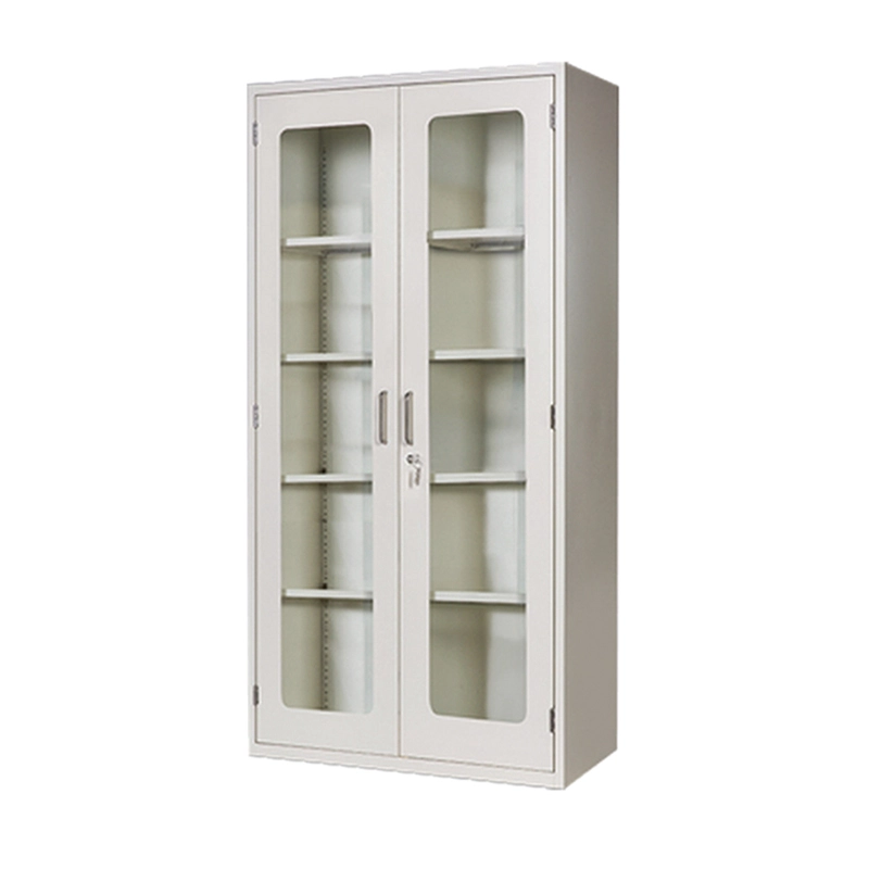 The steel frame is treated with a corrosion-resistant coating, while the glass doors are impact-resistant and easy to clean. Shelves can be repositioned to accommodate different container sizes, from small reagent vials to larger medicine packs.